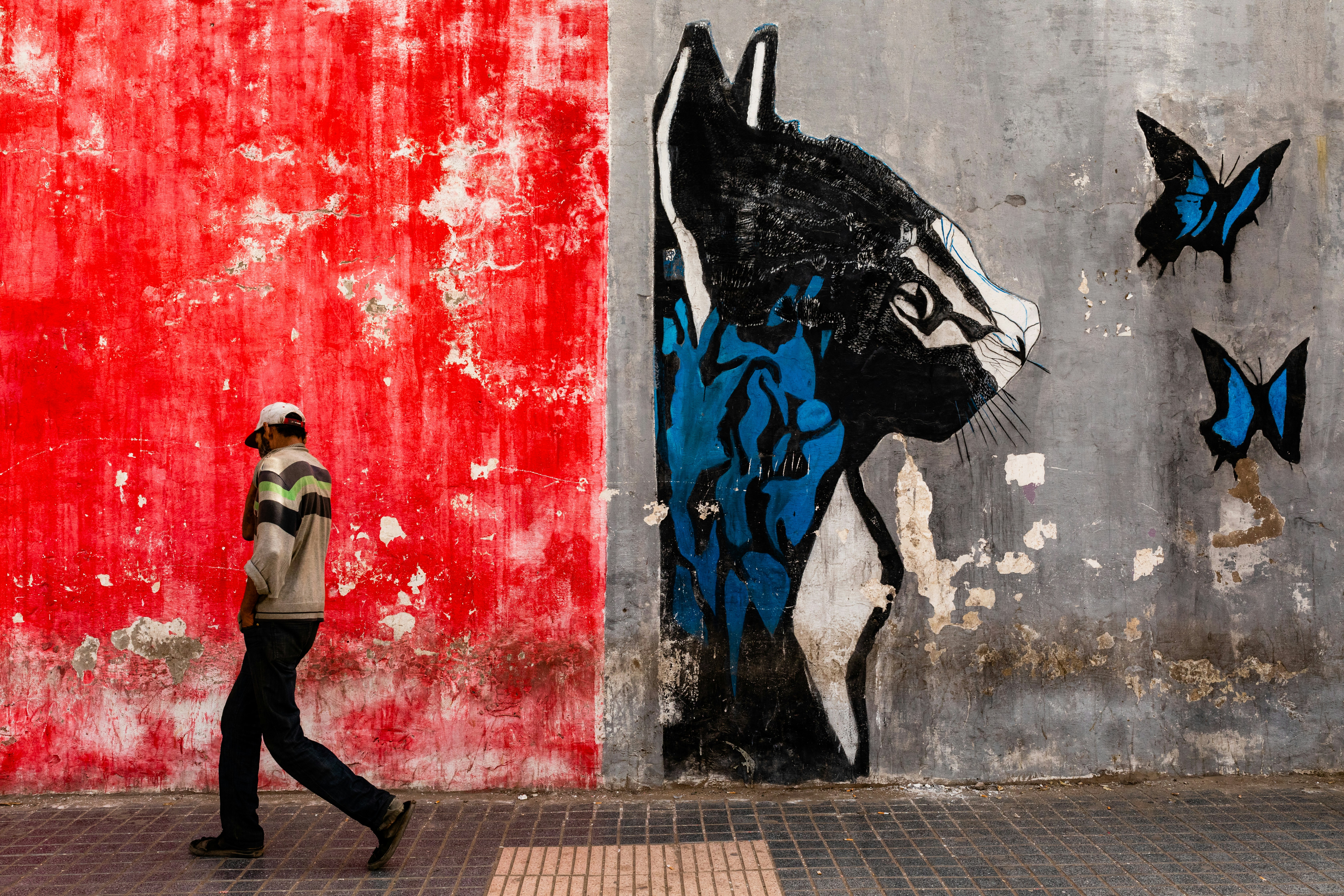 Man Walking On The Street With Graffiti On Wall Photo Free Shoe Image On Unsplash